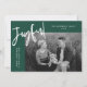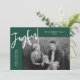 Skicka glädje till vänner och familj med ett enkelt Glatt helgdag-kort av Late Bloom Paperie! Det moderna helgdag har "Glatt" i ett vitt, handskrivet penselskript med mörk grönt bakgrund. Anpassa kortets framsida genom att lägga till foto, anpassningsbar hälsning, familj namn och år. Kortet återgår till visning en grönt och vitt diagonalt rand mönster.