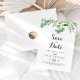 Denna grönt är eukalyptus botaniska kalligrafi bröllop spara datum är perfekt för ett bröllop som är rikt. Utformningen har handmålade konstnärliga vackra eukalyptus grönt löv, som är sammansatt i vackra buketter för att försköna evenemanget.
