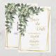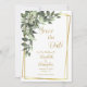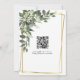 En vacker grönska med vita blommor och en guldram Bröllop Spara datumet. QR-kod på baksidan för att skicka gäster till din webbplats.