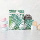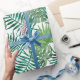 Modern exotisk tropisk grönt och vattenfärgsblått löv sömlöst mönster över vit bakgrund