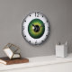 Grönt Öga Iris - GREI100 © Sunny Mars Designs. Coola, roligt anpassningsbar tryckte ögongloben med stor storlekare rundklocka i grönten med ett trendig, modernt, vackert, unikt, fräckt, läcker, konstig och vriden grafik som illustrerar en slående stor grönt realistisk ögonglobiris av ett öga.