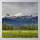 Grönt fält med snöhaltiga alpernor poster