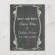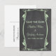 Elegant och trendig Flourish Chalkboard Spara vykortet för datum med en chalkboard-bakgrund och en finare-snurrande och löv art deco gräns i myntgrönt. Enkel att anpassa, lägg bara till information om bröllop. Klicka på Anpassa om du vill söka efter fler anpassningsalternativ.