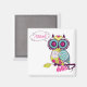 Grönt Färgfylld Ornate Retro Blommigt Uggla Magnet