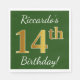 Den här enkla pappra napkin-designen innehåller ett meddelande som "Riccardos fjortonde födelsedag!", där "14:e" har ett faux-guld-liknande utseende på gröntens färgad. Namn kan vara personlig. Den skulle kunna användas i en födelsedagsfest till någon som firar sin fjortondagarsdag. [~Z0000081]