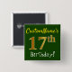 Grönt, faux Guld 17:e födelsedagen, med eget namn Knapp