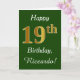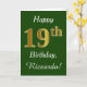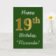 Grönt, faux Guld 19:e födelsedagen + eget namn Kort