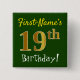 Grönt, faux Guld 19:e födelsedagen, med eget namn Knapp