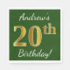 Grönt, Faux Guld 20:e födelsedagen + eget namn Pappersservett