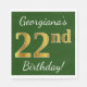 Grönt, faux Guld 22:a födelsedagen + eget namn Pappersservett