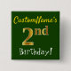 Grönt, faux Guld 2:a födelsedagen, med eget namn Knapp
