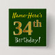 Grönt, faux Guld 34:e födelsedagen, med eget namn Knapp