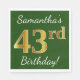 Den här enkla pappra napkin-designen innehåller ett meddelande som "Samantas 43:e födelsedag!", där "43:e" har ett faux-guld-liknande utseende på gröntens färgad. Namn kan anpassas. Den skulle kunna användas i en födelsedagsfest till någon som firar sin fyrtiotredje födelsedag. [~Z0000081]