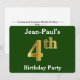 Den här inbjudan har ordningstalet "4:e" med ett faux guld-liknande utseende. Den har också ett eget namn och en färgad för grönt. Händelseinformationen på baksidan kan vara personlig. Den skulle kunna användas för människor i inbjudan till någons fjärde födelsedagsfest. [~Z0000013]