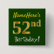 Grönt, faux Guld 52:a födelsedagen, med eget namn Knapp