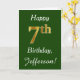 Grönt, faux Guld 7:e födelsedag + eget namn Kort