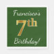 Den här enkla pappra napkin-designen innehåller ett meddelande som "Francisco's 7:e Birthday!", där "7:e" har ett utseende som liknar guld, på gröntens färgad. Namn kan anpassas. Den skulle kunna användas i en födelsedagsfest till någon som firar sin sjunde födelsedag. [~Z0000081]