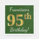 Den här enkla pappra napkin-designen innehåller ett meddelande som "Francisco's 95 Birthday!", där "95:e" har ett faux guld-liknande utseende på gröntens färgad. Namn kan anpassas. Den skulle kunna användas i en födelsedagsfest till någon som firar sin 90-femte födelsedag. [~Z0000081]