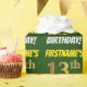 Den här pappra designen innehåller ett meddelande som "FIRSTNAME's 13:e BIRTHDAY!", där "13:e" har ett utseende som liknar guld och liknar färg, och med namn och "BIRTHDAY" i ett roligt, fet teckensnitt. Namn är anpassade, och bakgrunden är färgadens grönt. Att packa pappert som detta skulle kanske kunna användas när man fyller på födelsedagskalkyl för någon i firande på deras trettonde födelsedag. [~Z0000208]