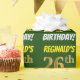 Den här pappra utformningen har ett meddelande som "REGINALD’s 26:e BIRTHDAY!", där "26:e" har ett utseende som liknar guld och liknar färg och med namn och "BIRTHDAY" i ett roligt, fet stil. Namn kan vara personlig, och bakgrunden är färgadens grönt. Att packa papper som detta skulle kanske kunna användas när man fyller på födelsedagskalkyl som ges till någon i firande på deras tjugosjätte födelsedag. [~Z0000208]