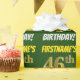 Den här pappra designen innehåller ett meddelande som "FIRSTNAME's 46:e BIRTHDAY!", där "46:e" har utseendet faux/imitation guld-liknande färg och med namn och "BIRTHDAY" i ett roligt, fet stil. Namn är anpassade, och bakgrunden är färgadens grönt. Att packa papper som detta kan kanske användas när man fyller på födelsedagskalkyl som ges till någon i firande på deras fyrtiosjätte födelsedag. [~Z0000208]