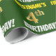 Den här pappra designen innehåller ett meddelande som "FIRSTNAME'S 4e födelsedagen!", där "4:e" har ett utseende som liknar faux/imitation guld-liknande färg och med namn och "BIRTHDAY" i ett roligt, fet teckensnitt. Namn kan anpassas och bakgrunden är färgadens grönt. Att packa pappert som detta skulle kanske kunna användas när man fyller på födelsedagskalkyl som ges till någon i firande på deras fjärde födelsedag. [~Z0000208]