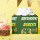 Den här pappra designen innehåller ett meddelande som "JESSICA:s 63:e BIRTHDAY!", där "63:e" har ett utseende som liknar guld och liknar färg, och med namn och "BIRTHDAY" i ett roligt, fet teckensnitt. Namn kan vara personlig, och bakgrunden är färgadens grönt. Att packa pappert som detta skulle kanske kunna användas när man fyller på födelsedagskalkyl som ges till någon i firande på deras sextiotredje födelsedag. [~Z0000208]