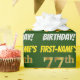 Den här pappra designen innehåller ett meddelande som "FIRST-NAMN's 77:e BIRTHDAY!", där "77:e" har ett utseende som liknar guld och liknar färg, och med namn och "BIRTHDAY" i ett roligt, fet stil. Namn kan vara personlig, och bakgrunden är färgadens grönt. Att packa pappert som detta skulle kanske kunna användas när man fyller på födelsedagskalkyl som ges till någon i firande på deras sjuttiosjunde födelsedag. [~Z0000208]