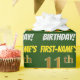 Den här pappra designen innehåller ett meddelande som "FIRST-NAMN's 11th BIRTHDAY!", där "11:e" har ett utseende som liknar guld och liknar färg och med namn och "BIRTHDAY" i ett roligt, fet stil. Namn kan vara personlig, och bakgrunden är färgadens grönt. Att packa pappert som detta skulle kanske kunna användas när man fyller på födelsedagskalkyl som ges till någon i firande på deras elfte födelsedag. [~Z0000208]