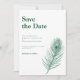 Inbjudan till Bröllop spara datum med minimal utformning ger en illustration av elegantens pjäsfjäderrasterkonst i ett grönt färg-tema. Den här Spara datuminbjudan är ett redo för dig att anpassa dig med informationen om din speciella dag och lägga till ett eget foto. En del av ett ständigt växande sortiment av papper finns i Emerald Grönt Peacock Feather Bröllop Suite för matchande artiklar.