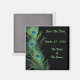Använda den här eleganten Peafowl bröllop magnet för att tala om för dina vänner och din familj att spara datumet för bröllop. Denna sjudande grönt-Fjäderdesign på dina magneter kommer att ge en speciell beröring till ditt fredshus bröllop. Detta liv med den svarta bakgrunden ger grönten och blått färg av fågelfjädern.