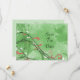 I Grönten har Finare Spara datum meddelande snurrar, linjer och blommor i grönt, svart, vitt och korall.