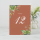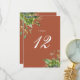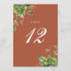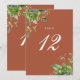 Dessa eleganta botaniska gröna blomsterbröllop bordskort kan anpassas med chic typografi på en terrakotta bakgrund. Kort kan dras på framsidan och baksidan (dubbel-sidig). Designad av Thisisnotme