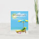 Grönt-pickle på en strandstol med rosa solglasögon och drinksvanskdryck för födelsedag. Text kan redigeras.
