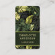 Affärskorten grönt Foliage Botanical Landscaper Gardener Namn har ett mönster i den tropiska grönten monstera foliage med ett övertäckt namn och företag eller beteckning på framsidan. På motsatt sida finns kontaktuppgifter för personligen. Designad av © Evco Studio www.zazzle.com/store/evcostudio