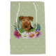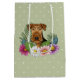 Desteis ursprungliga tecknad illustrerar en berömvärd airedale Terrier-rasens hund i närheten omgiven av färgstarka sommarblommor. Det finns en rosa blomma, en lila blomma, en mörk rosa blomma och en vit daisy blomma tillsammans med en del grönt löv och grenar. Bakgrunden färg är grönt med en ljuspolka punkt mönster. Bakgrunden till färg kan ändras till vilket annat färg som helst och polkatolpunkten mönster kan tas bort om så önskas.