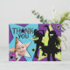 Partynågot liknande en rockstjärna! Aqua- och gröntstjärnor över purpurfärgad bakgrund med flickan som sjunger och dansar: höften och den sassy rockstjärnan tackar dig att card.
