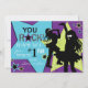 Partynågot liknande en rockstjärna! Aqua- och gröntstjärnor över purpurfärgad bakgrund med flickan som sjunger och dansar: höften och den sassy rockstjärnan tackar dig att card.