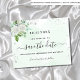 Ett giftigt och trendig Spara datumkortet för en 40:e (eller någon annan ålder) födelsedagsfest. En vattenfärgad grönt och vit bakgrund som dekoreras med faux silver glitter damm, vita blommigtar och grönenergi. Anpassa och lägg till datum och namn/ålder 40. Svart färgad brev. Texten: Spara datumet skrivs med ett stort trendig-handskript i stil.