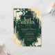 En modern, chic och glamorös inbjudan med glitter-droppar och blommor i gröntens bakgrund.