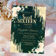 Grönt för Blommigt för drivrutiner i Guld Glitter Inbjudningar