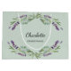 Bakgrund till grönten Sage. Dekorerad med lavender-blommor och eukalyptus greenery. Anpassa och lägg till namn i din konstgjord.