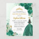 Blommig Smaragdgrön Prinsessa Klänning Glitter Gnista Tiara Krona Fjäril 15-årsdag BILINGUAL Spansk Quinceanera Inbjudan