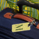 Klassisk bagagetagg med monogrammet med ditt första monogram i grönt på blommigtens gult mönster. Lägg till kontaktinformationen på baksidan.