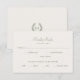 Den här elegantens OSA kort har en enkel lagerkrans som ramlar in parets initialer. Den inspireras av 1920-talets bröllopsinbjudningar och blandar klassisk formalitet med modernt smak, med ett traditionellt serif-teckensnitt, ett kalligrafiskt skript för vintage och en ren arrangemang. Anpassa mallen med parets monogram, svarsinformation och val av entrée - all text är anpassade. Anpassa mallen med parets monogram, svarsinformation och val av entrée - all text kan anpassas till den information du vill ha. Du kan också anpassa bakgrunden till färg med designredigeraren verktyg. Tryckt färg: grönt och benvit, elfenbenskräm. Köp insamlingen för matchande bröllop-kontorsmaterial och online för försäljning!