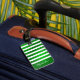 Skapa en unik personlig-bagagetapp med ett kalkgrönt och vitt rand. Med malltext är det enkelt att skriva ditt namn på framsidan och adress, mobil och annan kontaktinformation på baksidan.