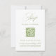 En OSA kort för elegant med skannerbar QR-kod - perfekt för par som väljer digitala svar. Har mjuk grönt och serif typsnitt på en skarp vit bakgrund, som matchar modern trädgård eller formellt bröllop utomhus. Gäster kan skicka OSA via bröllop webbplats och få tillgång till information om händelser i fullt med hjälp av en snabbsökning. Helt redigerbart. Del av "Iris"-samlingen i Bröllop — klicka på samlingslänken på den här sidan om du vill bläddra i samordningen av delara som inbjudningar, menyer, skyltar med mera.