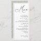 Det här anpassade Menu-kortet är designat för att koordinera med vår Romantiska skriptsamling bröllop, och innehåller en rotografitext i ett svepande skript parad med ett classy serif-teckensnitt i svart, med en grönt i frostiskt läge tillbaka och ett anpassade monogram. Matchande objekt är tillgängliga.