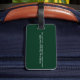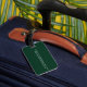 En grundläggande och enkel mörk grönt märkre med fält för namn, yrke och adress... för att enkelt identifiera ditt arbetsbagage på flygplatsen