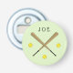 Lägg till initialer eller kort för att anpassa denna runda flaska-öppnare, som är underbar för alla fotbollsspelare fläkt. Lägg till ditt team namn till exempel. Utformningen har korsat fladdermöss och mjuka bollar på en blek grön bakgrund.